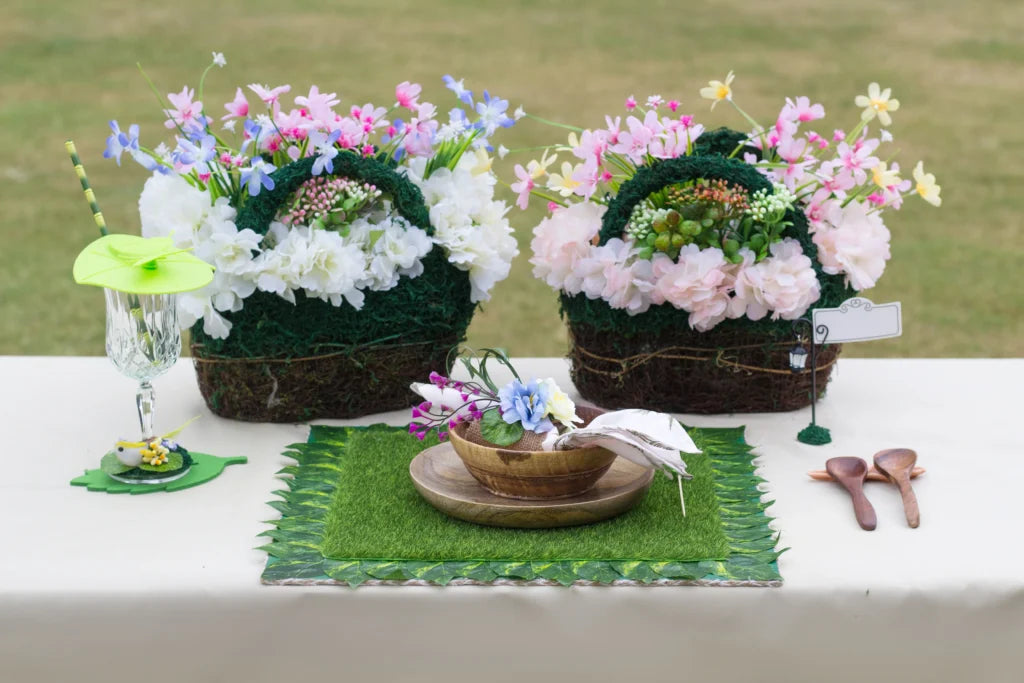 For a spring or summer event, a garden party theme can create a beautiful and whimsical atmosphere. Use floral patterns, fresh flowers, and garden-inspired decor to create a vibrant and colourful tablescape. You can also incorporate some DIY table decor, such as a homemade flower arrangement or a DIY moss table runner.