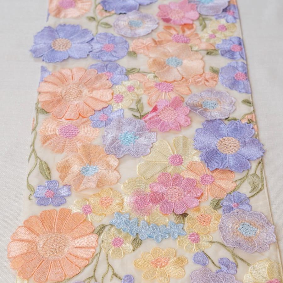 Pastel florals in hues of lavender, blush, and soft peach create a romantic harmony, evoking the elegance of European spring courts.