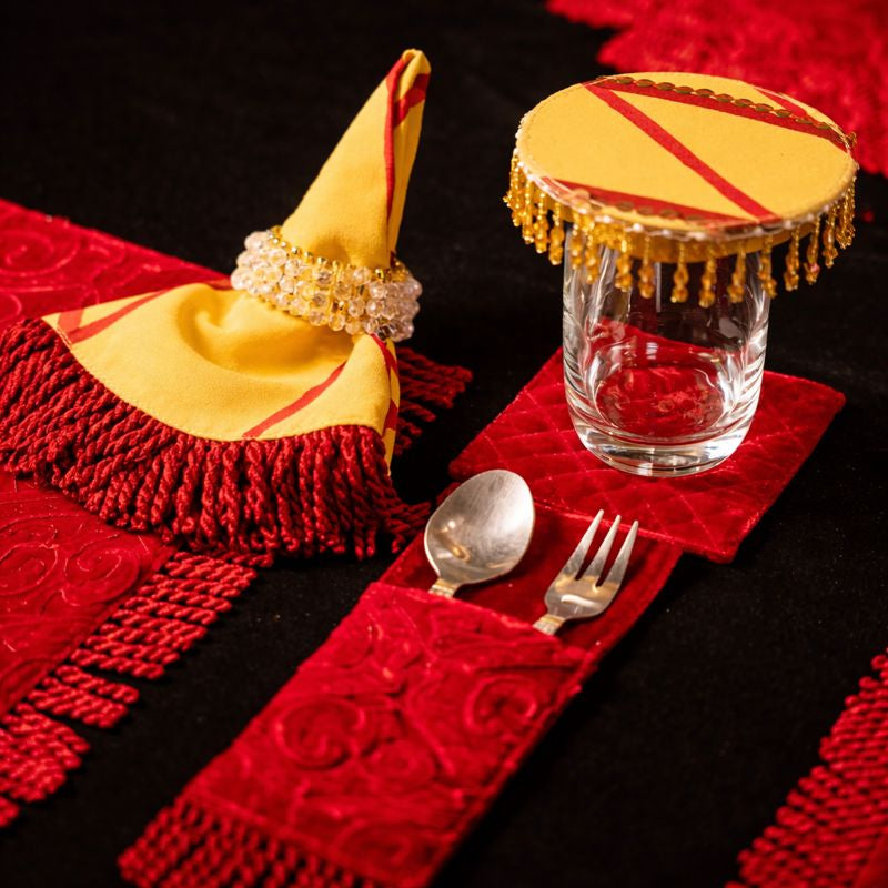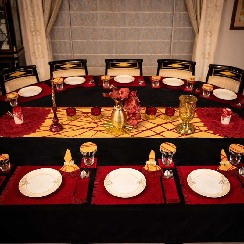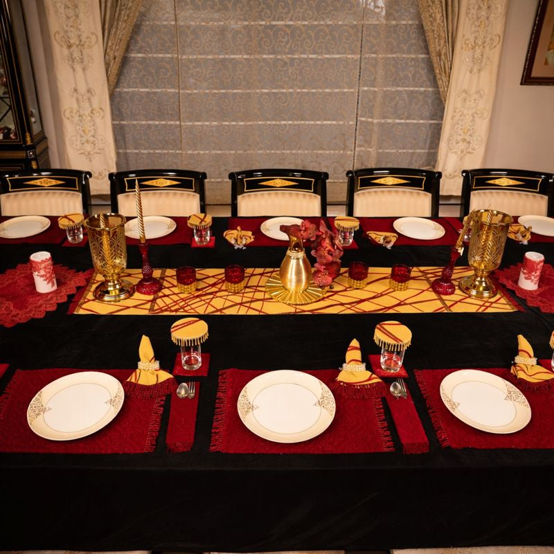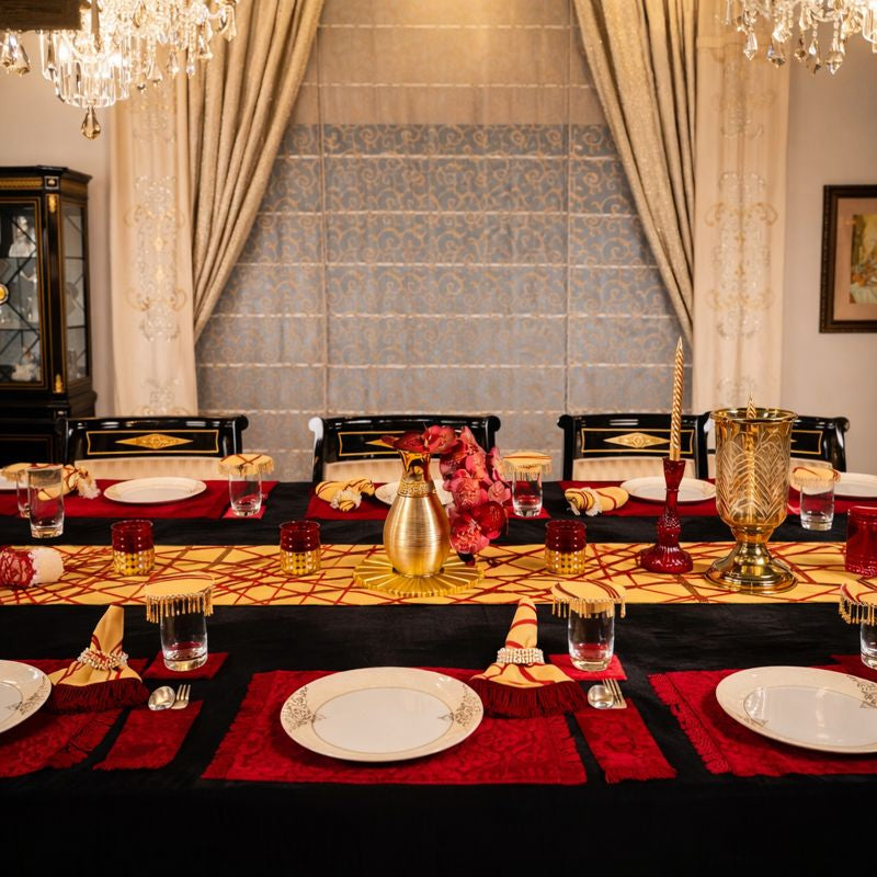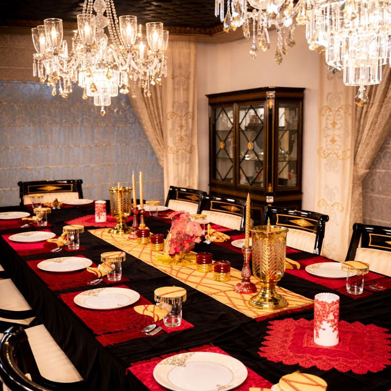 Ideal for festive banquets, Diwali soirées, celebratory dinners, and royal-themed gatherings, this setup transforms dining into an experience—where guests don’t just sit at a table, they take part in a moment of grandeur."